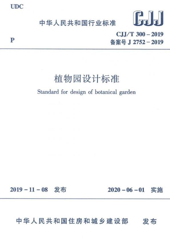 根據中華人民共和國住房和城鄉建設部2019年第286號公告,國家行業標準《植物園設計標準》,編號為CJJ/T 300-2019,自2020年6月1日起正式施行。