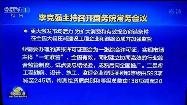 剛剛,李總理主持召開國務(wù)院常務(wù)會議,明確將工程勘察、設(shè)計、施工、監(jiān)理企業(yè)資質(zhì)類別和等級由593項(xiàng)減少至245項(xiàng)目,將測繪資質(zhì)類別和等級由138項(xiàng)減至20項(xiàng),解決資質(zhì)類別過細(xì)、等級過多等問題。多種建筑資質(zhì)面臨取消、合并!zui終自2020年7月2日住建部發(fā)布備受矚目的《建設(shè)工程企業(yè)資質(zhì)標(biāo)準(zhǔn)框架(征求意見稿)》將正式塵埃落定!