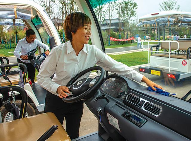 雄安郊野公園游客觀光車的司機準備接待游客。