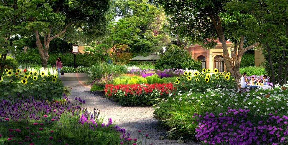 2、采用多種植物配置形式與各功能區(qū)主題呼應(yīng),比如自由組合的區(qū)域布局采用自然種植形式,規(guī)則式場景布局采用規(guī)則式綠地形式相協(xié)調(diào),通過綠地串聯(lián)區(qū)域,形成一個(gè)有主題的整體。